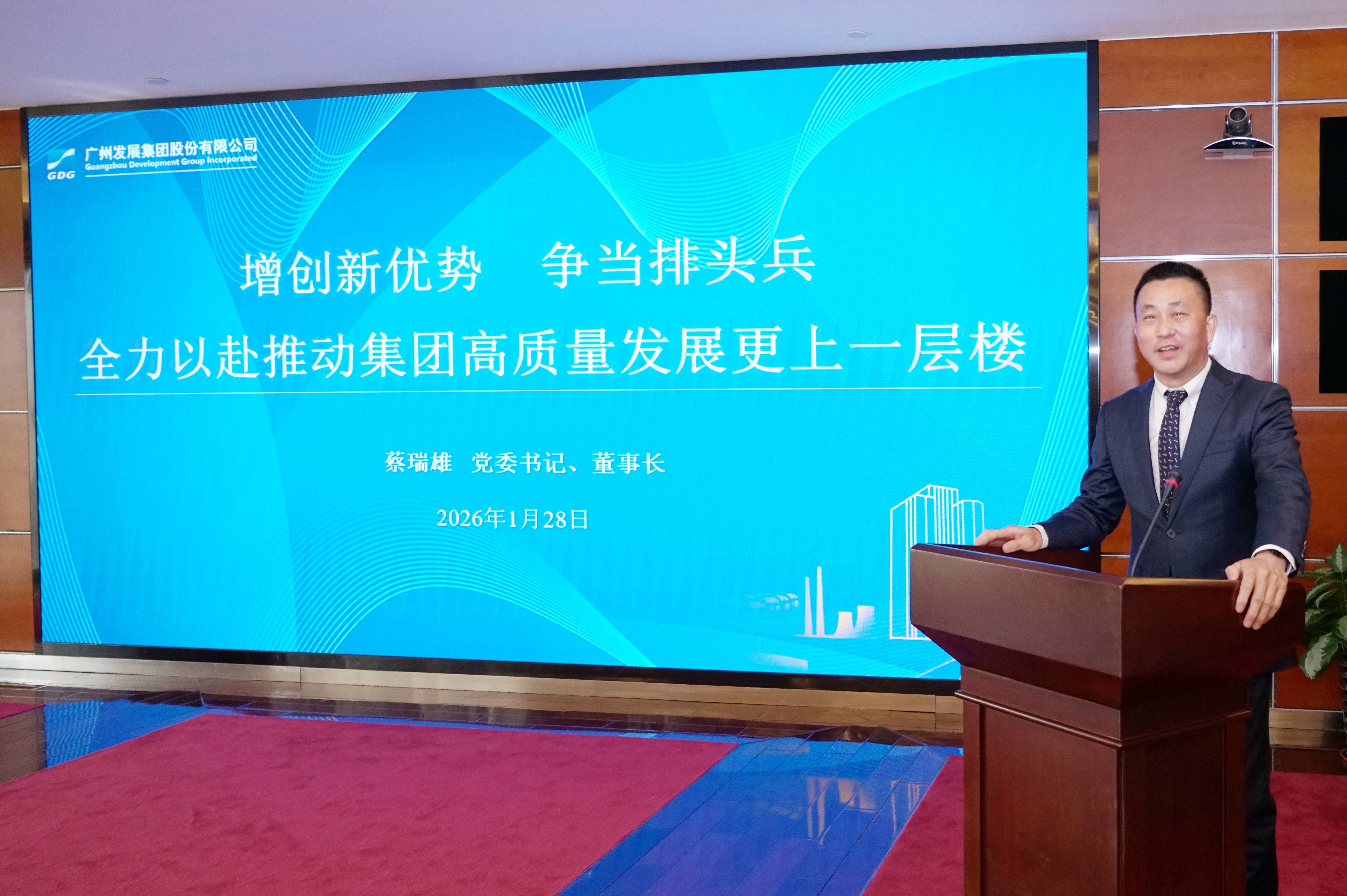 会上,蔡瑞雄党委书记、董事长作了题为《增创新优势争当排头兵全力以赴推动集团高质量发展更上一层楼》的讲话,吴宏总经理作了《广州发展2025年经营工作总结及2026年经营工作安排》的报告,李光党委副书记作了《广州发展2025年党建和思想政治工作总结及2026年工作安排》的报告。